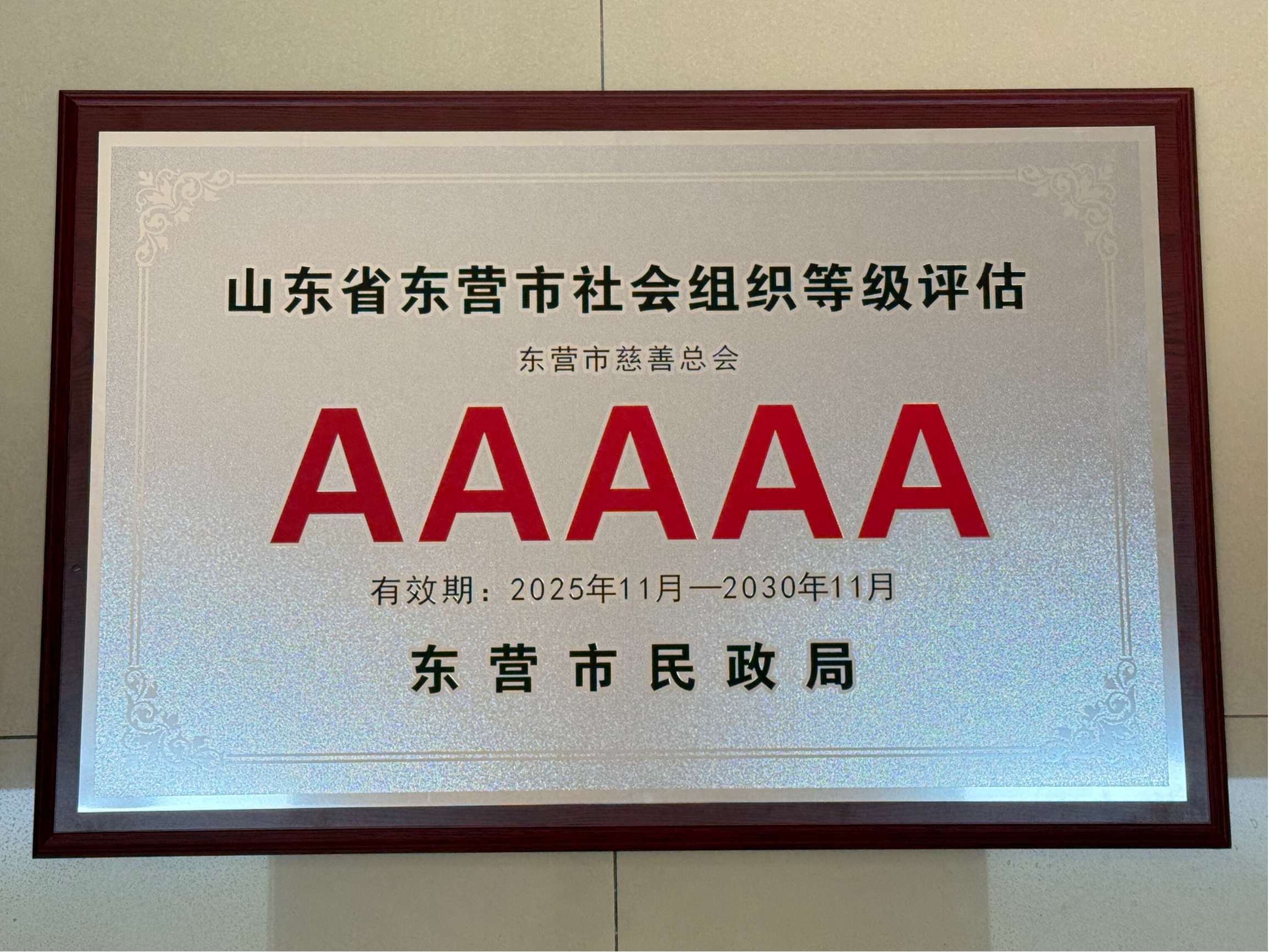 东营市慈善总会荣获5A级社会组织